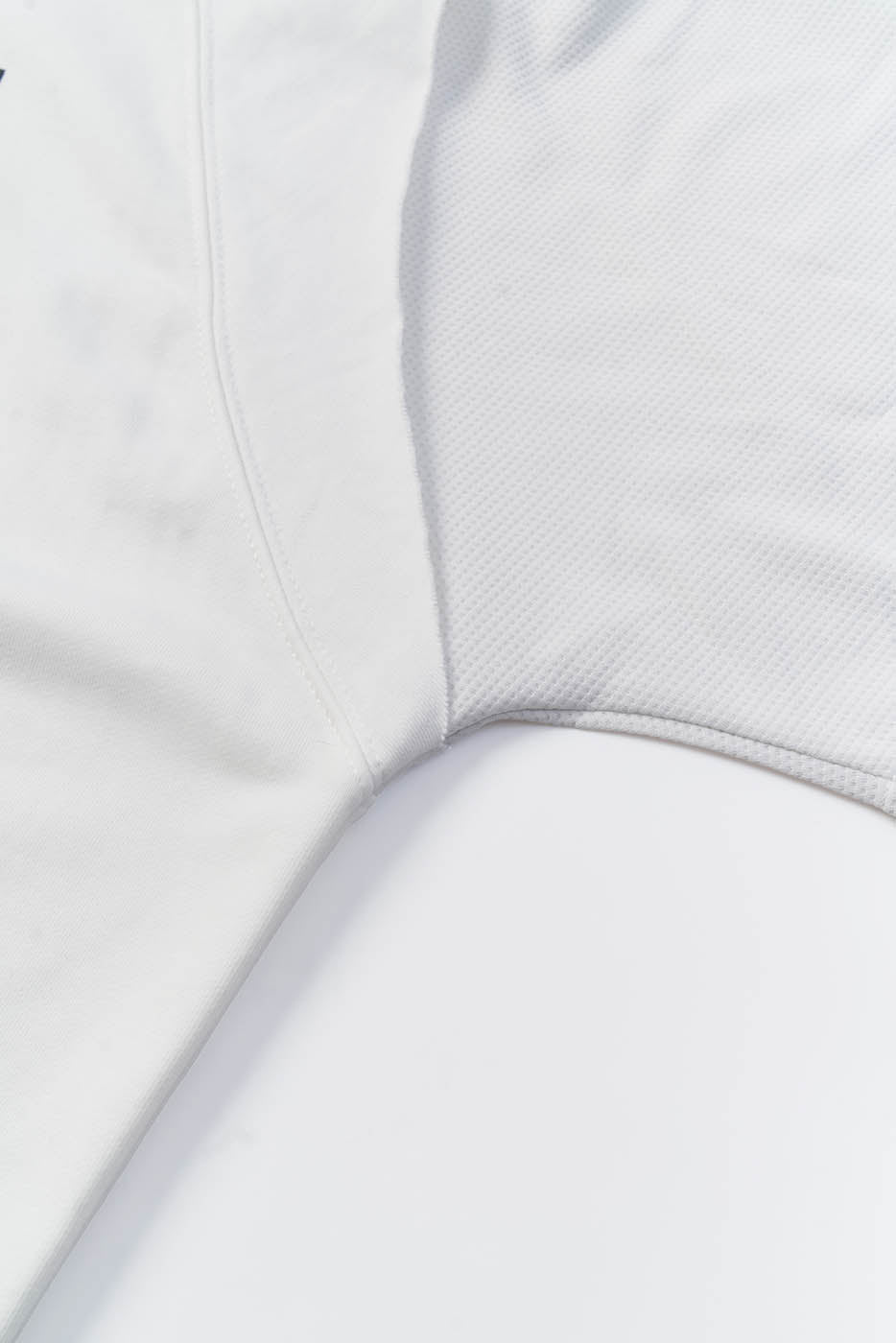 This garment is a tribute to the legendary designer Raf Simons, who founded his eponymous fashion brand in 1995 and closed it in 2023. The design borrows elements from Raf Simons' classic sleeveless hoodies from 2002, but with an oversized hood inspired by "Assassin’s Creed," creating a mysterious and expansive appearance. Additionally, we utilized fabric typical of football jerseys for the sleeves, integrated within the hoodie for a faux-layered design.
