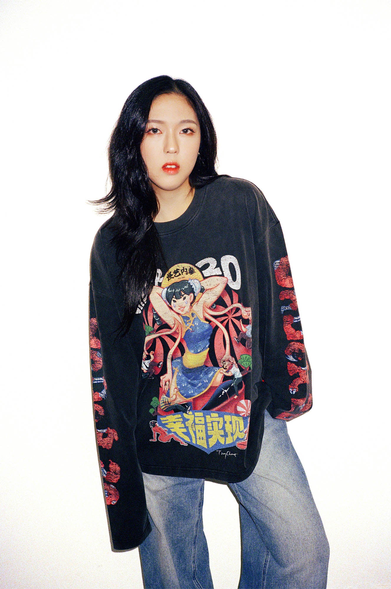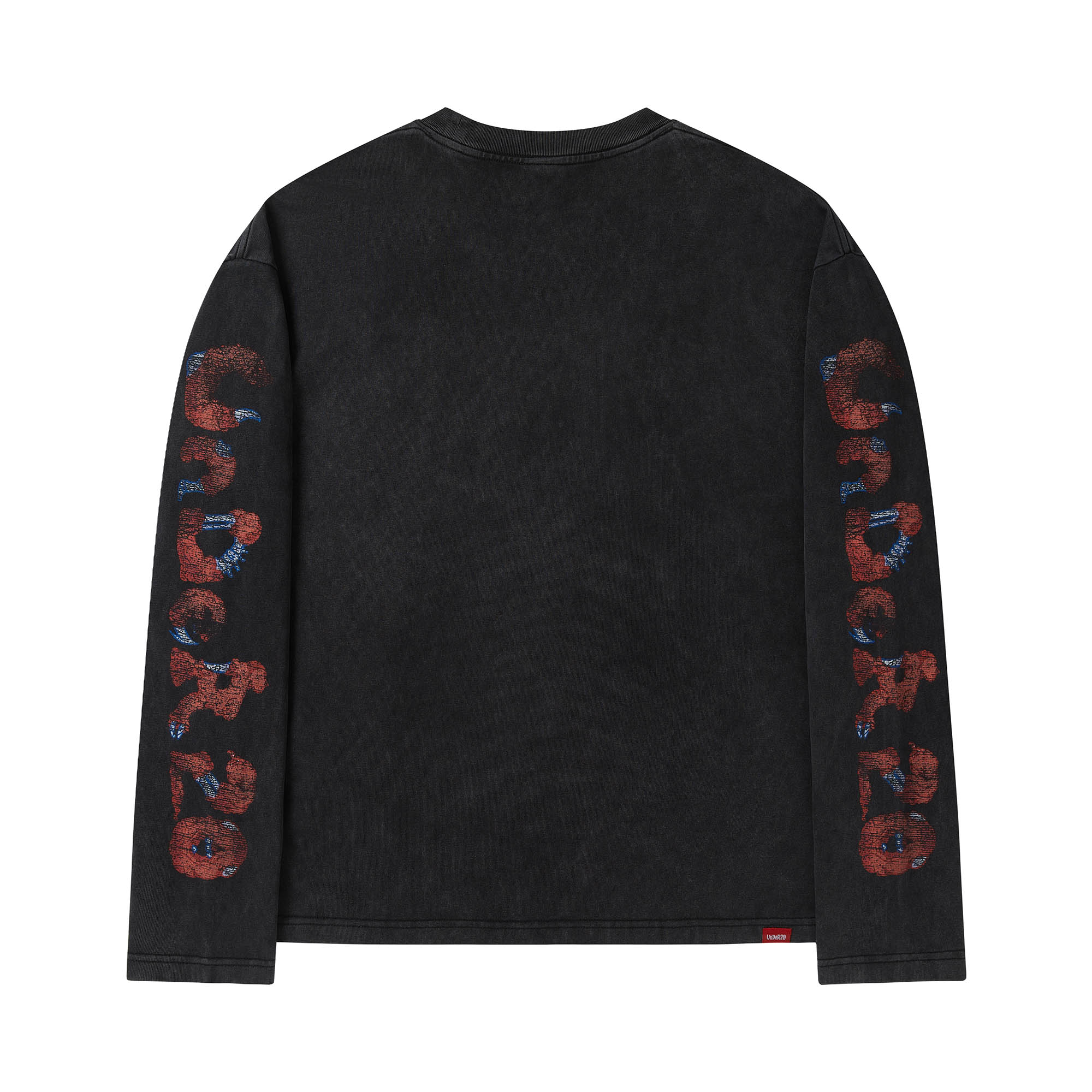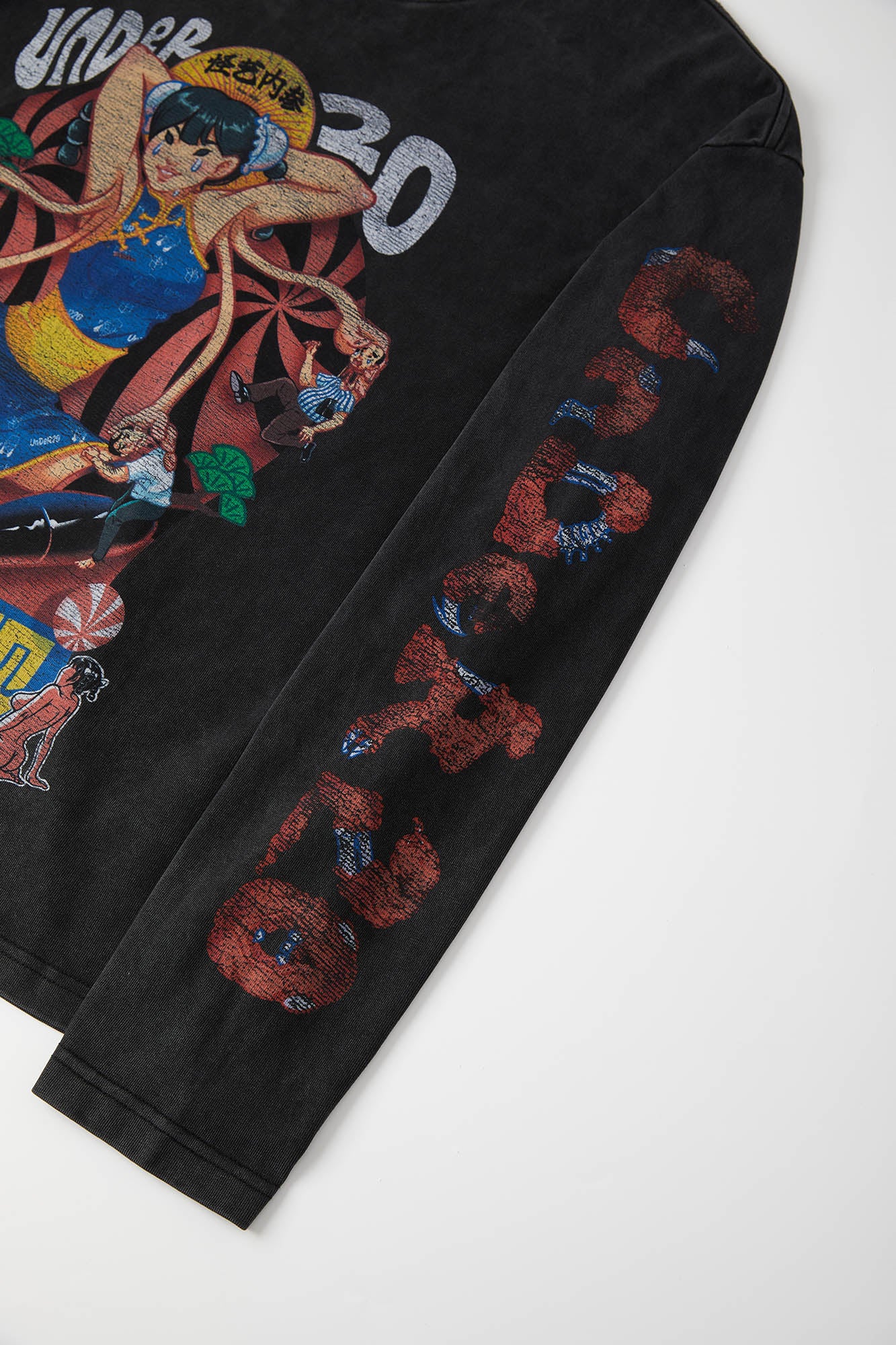 With UnDeR20’s classic boxy-fit long-sleeve tee, enhanced by a washing process and distressed printing techniques, the entire piece exudes a strong vintage vibe, making it both unconventional and timelessly edgy.