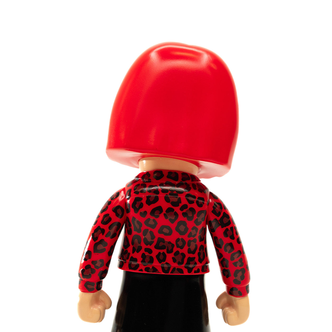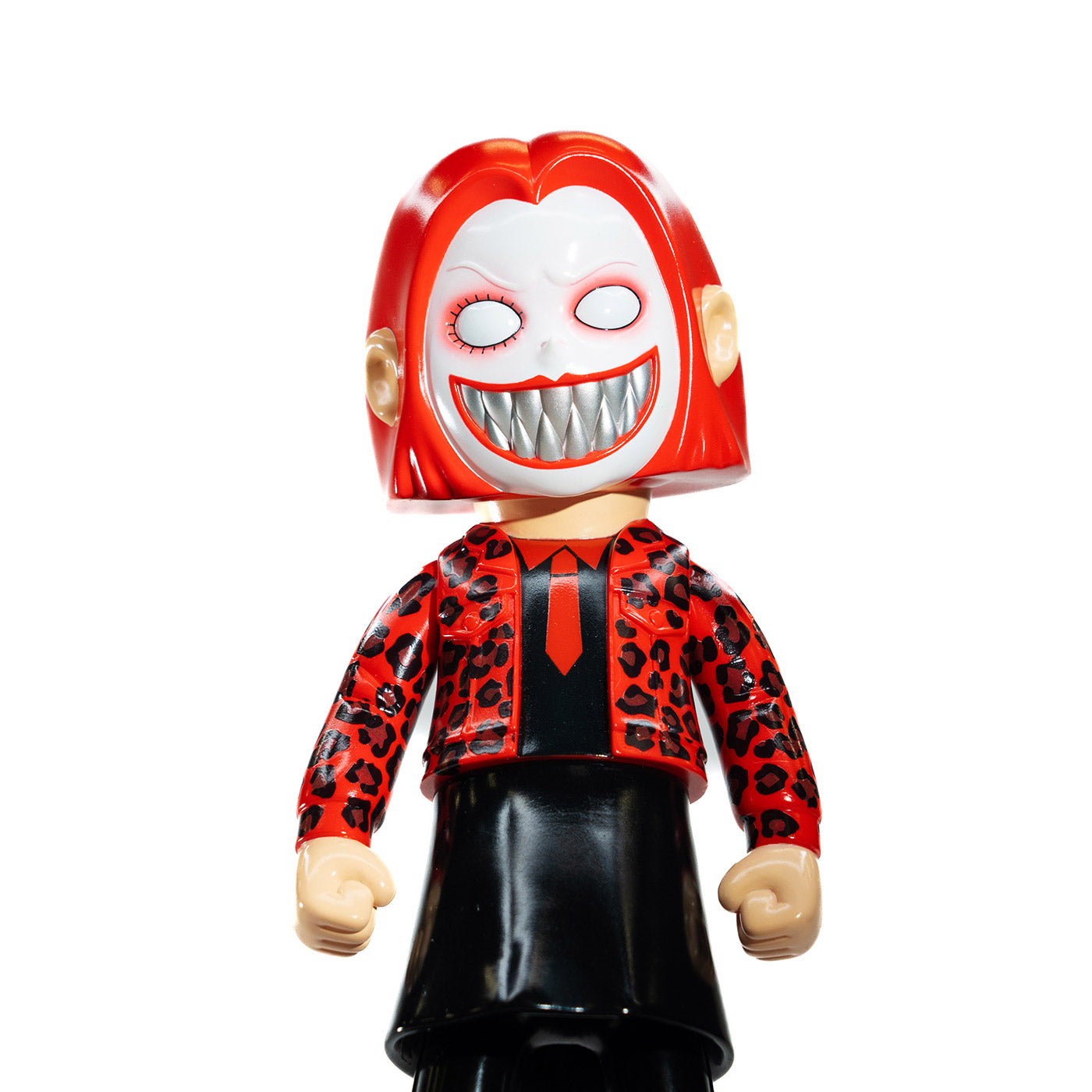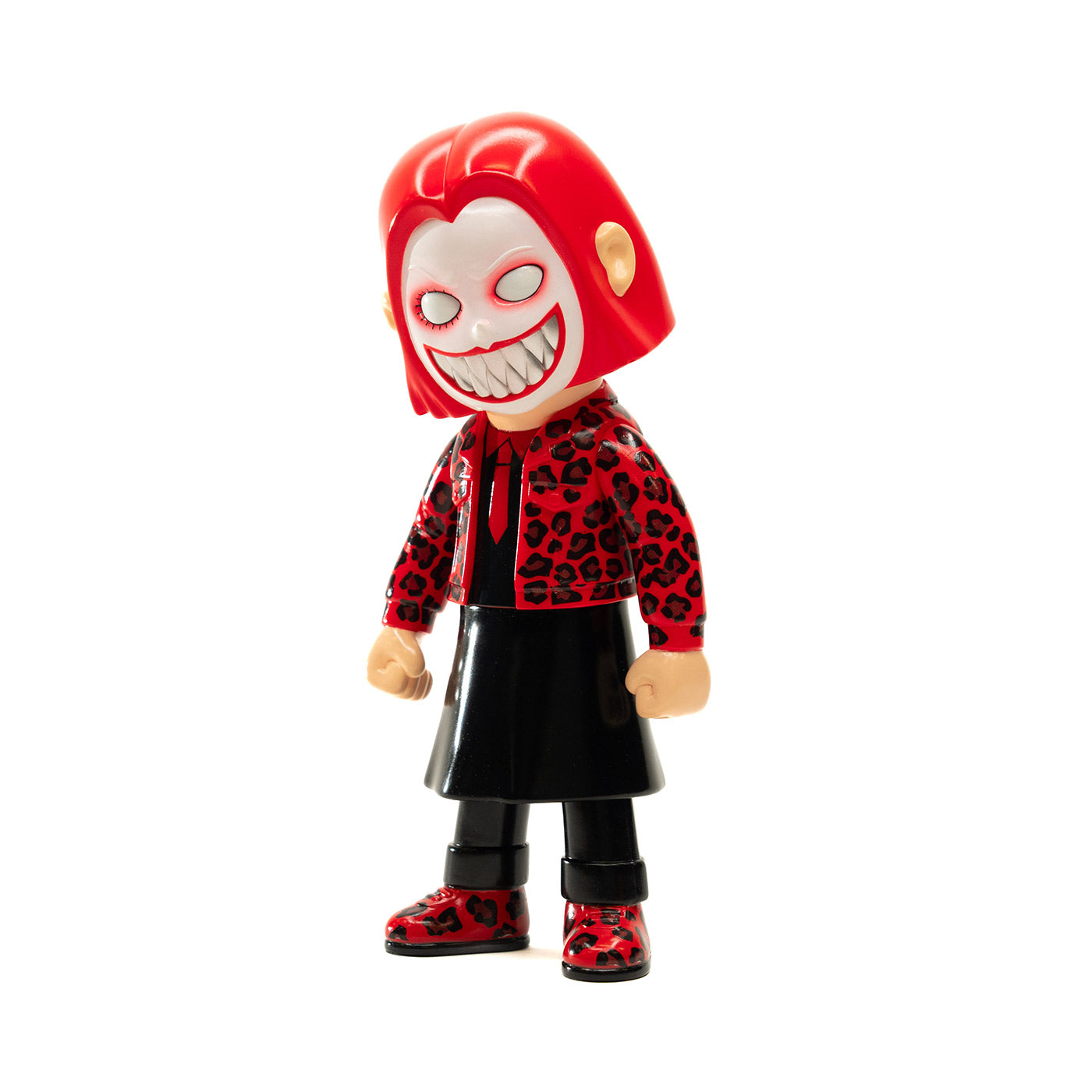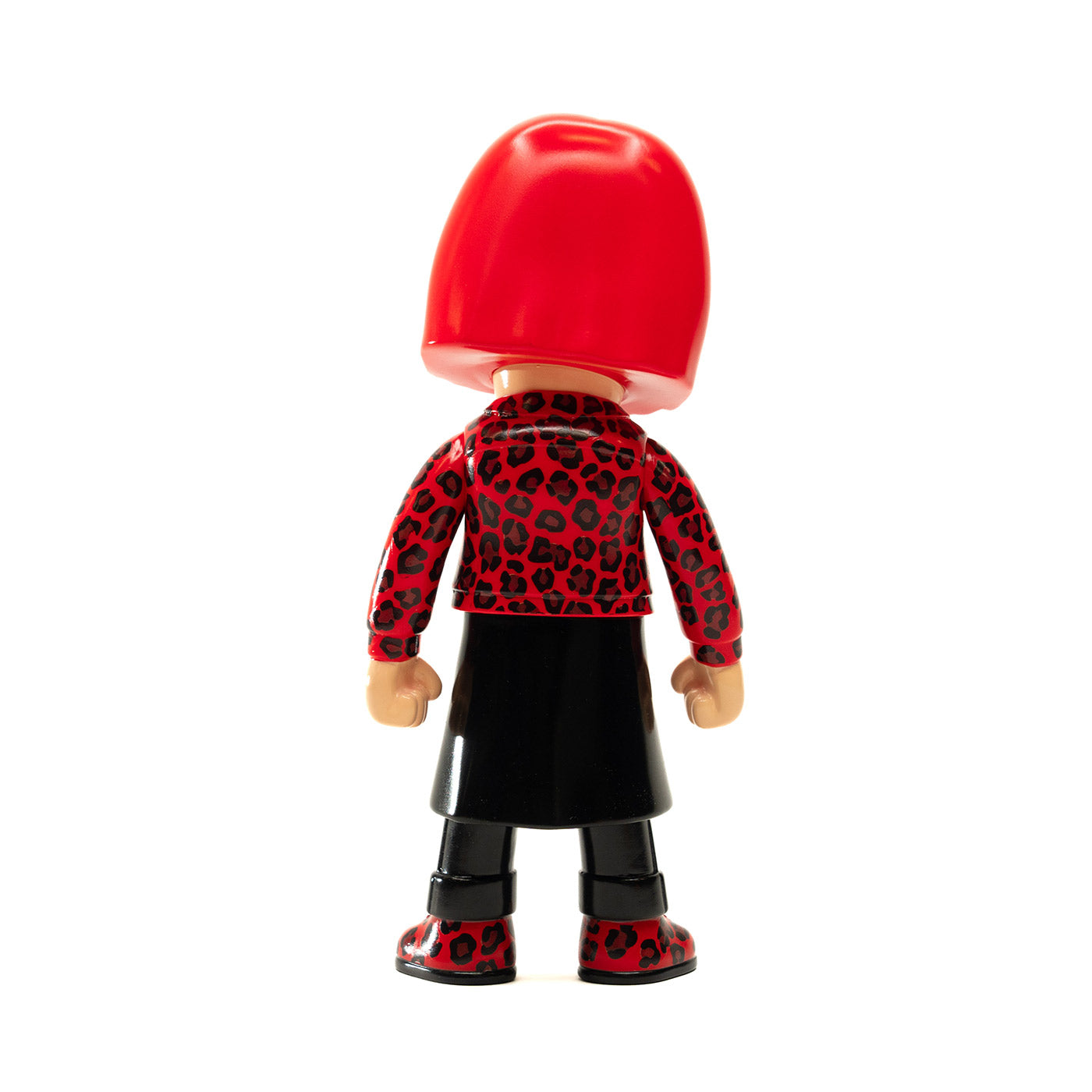 The second color scheme of the SOFUBI toy Lola in multiverse is inspired by American rock star Marilyn Manson and famous Japanese artist Yayoi Kusama. Marilyn Manson was the childhood rock music mentor of designer TenGuSan, while Yayoi Kusama is an artist with magical power. These two seemingly unrelated individuals share certain similarities, such as their strong, distinctive characters seen both in themselves and their respective works of art, as well as obsession and madness. They both have dyed their hair red, one has worn leopard print, and the other is adept with polka dots. Therefore, this Lola is named Marilyn Yayoi.